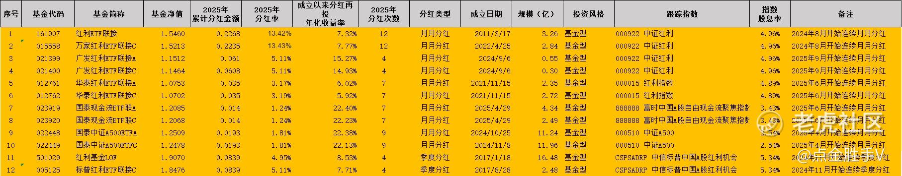 有些基金分红率很高,但年化收益为负、规模持续缩水,甚至是 “靠卖资产凑分红”,这种就是 “假高分红”。一定要结合年化收益、基金规模、基金经理稳定性、跟踪指数质地综合看,比如上面表格里那些成立以来分红次数多、年化收益正的产品,才是真靠谱。