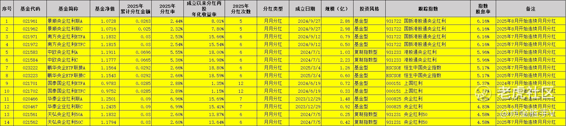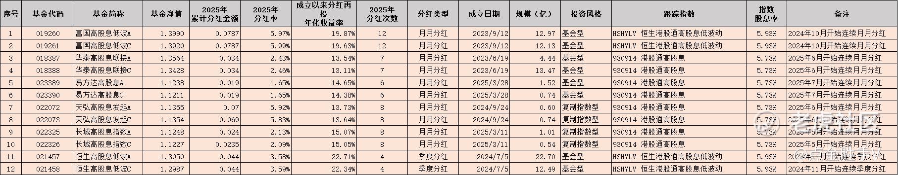 从2025年的分红数据看,这类基金覆盖了港股通央企红利、红利低波、中证红利、恒生高股息等多个赛道,既有ETF联接,也有指数复制型,规模从小的几千万到大的几十亿不等,选择空间特别大。