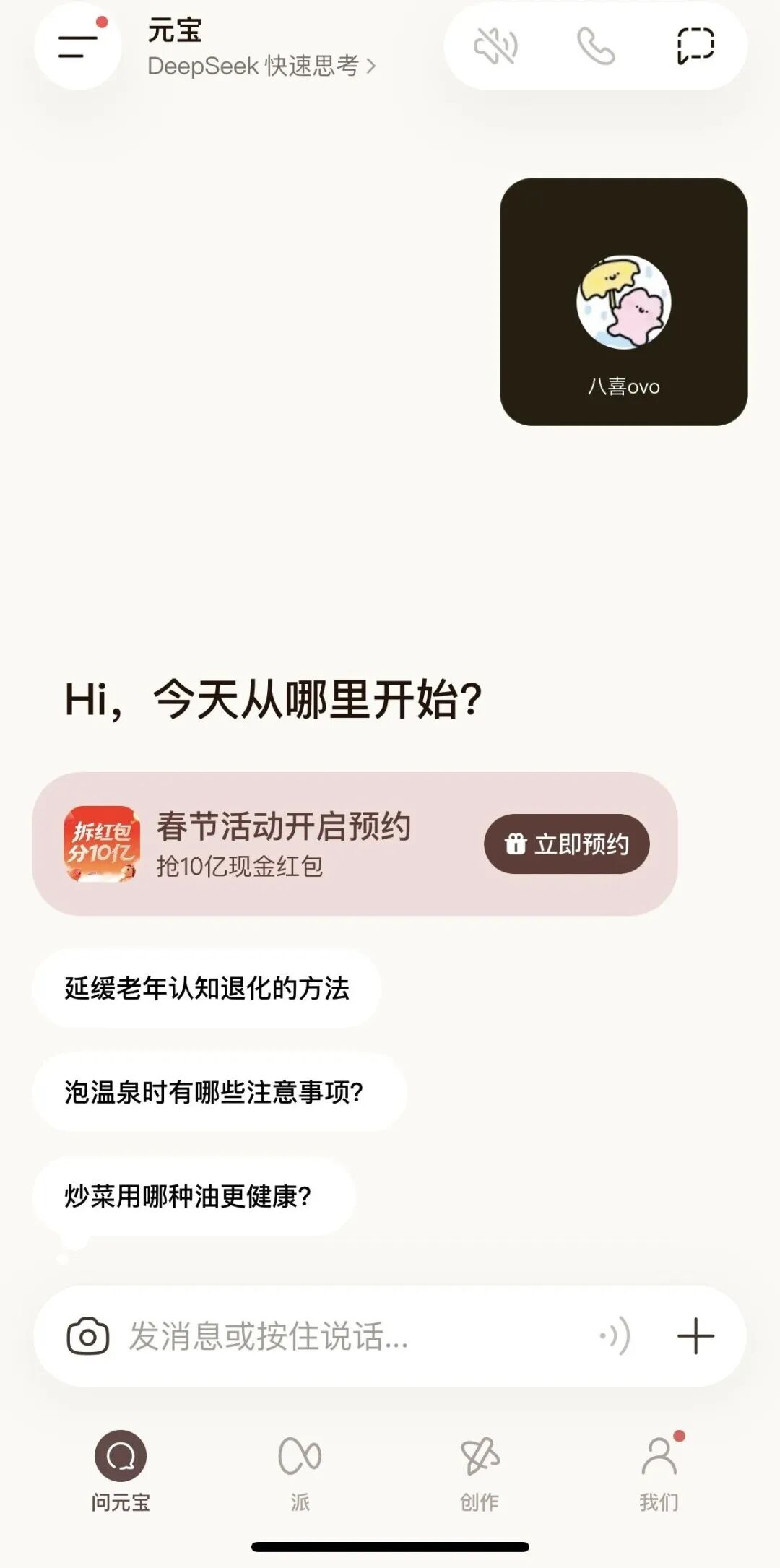 但是,除了能在元宝里聊天、或者开腾讯会议以及一起文元宝问题,八姐也没搞明白这个功能到底有什么吸引人的。只能说,腾讯是想将自己的社交基因和优势和分享给元宝吧。