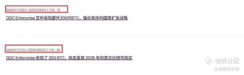 DDC开年新增持了400枚大饼,其创始人、董事会主席兼首席执行官朱嘉盈(Norma Chu) 在《2026 年致股东信》中表示: “在机构参与的早期阶段,市场波动在所难免。但我们认为,真正为长期做好准备的企业,能够在波动中发现并把握机会。公司的核心方向始终是稳健推进储备扩展,在完善的治理体系支持下,持续打造具备长期竞争力的BTC储备。”
