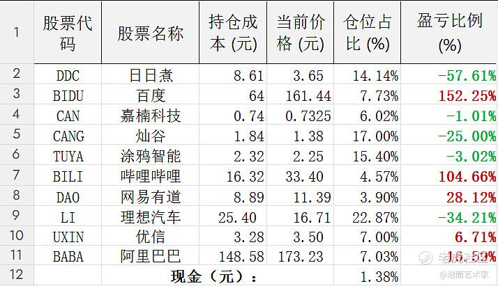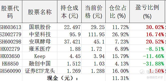 当前仓位分布表