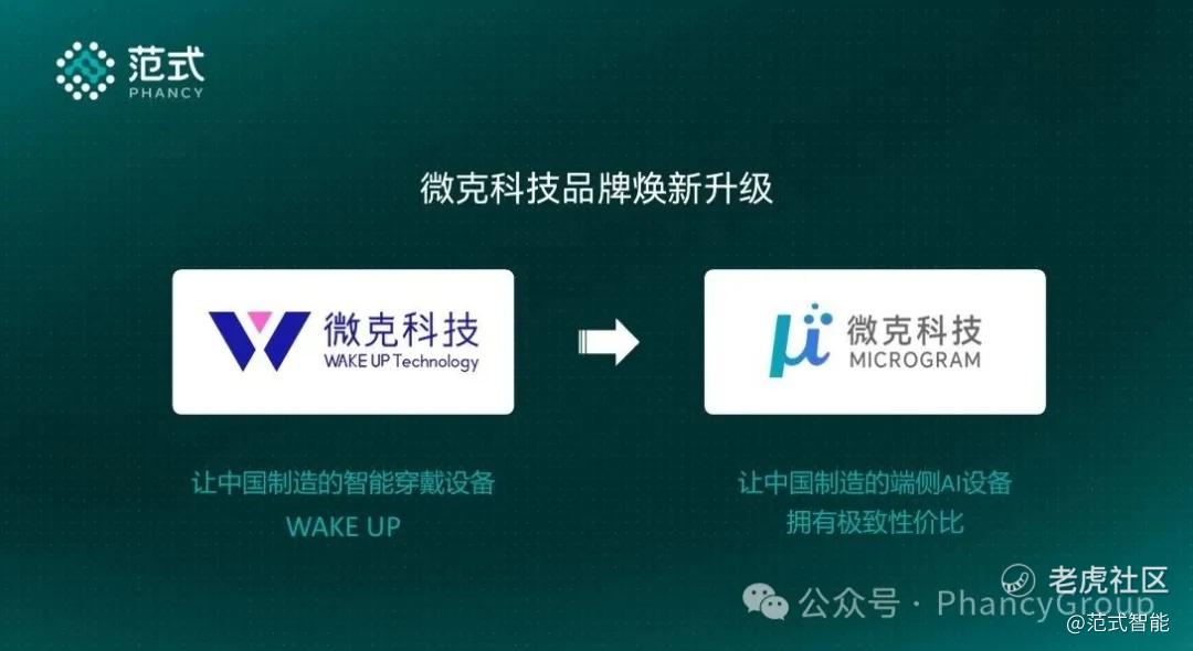 同时,他还揭晓了微克科技战略升级情况:微克科技的英文名称由“WAKE UP Technology”升级为“Microgram”,并同步启用全新LOGO。这一焕新不仅是视觉形象的更新,更是品牌使命的跃迁——从早期“让中国制造的智能穿戴设备wake up”,进化为“让中国制造的端侧AI设备拥有极致性价比”。