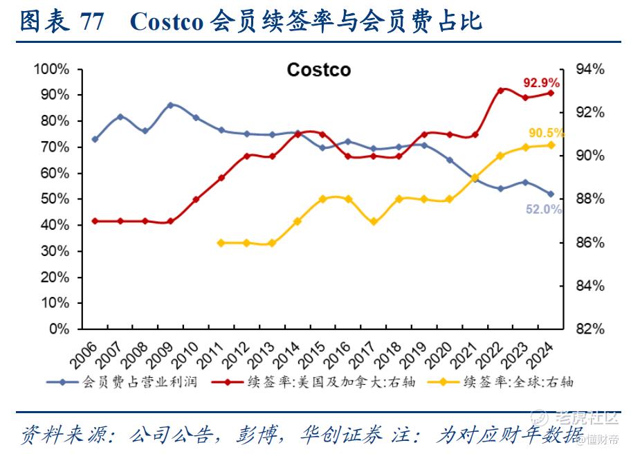 通过做大自营品牌,Costco进一步强化了高性价比定位,美国及加拿大会员续签率高达92.9%,全球会员续签率高达90.5%。唐吉诃德毛利率与自有品牌占比同步提升。