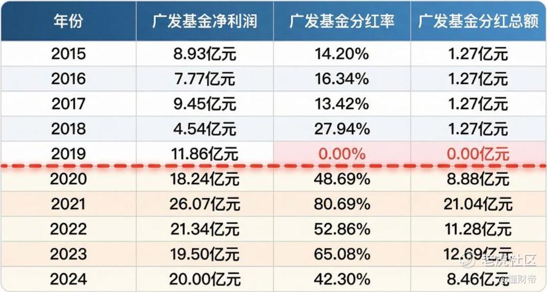 员工持股平台持有广发基金10%的股权,测算下来,2020年至2024年间,广发基金持股的一众高层与基金经理合计分红约6.47亿元。