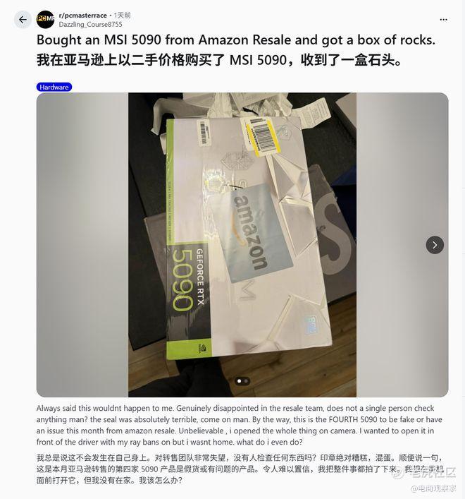网购显卡变“石头”?亚马逊Resale渠道包装松动,商品审核机制遭质疑