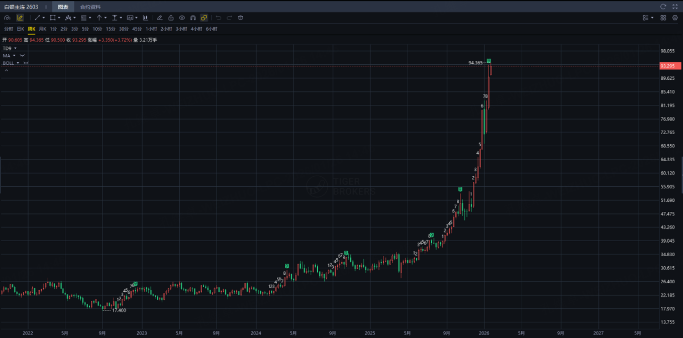 $白银ETF-iShares(SLV)$ $白银主连 2603(SImain)$ $迷你白银主连 2603(QImain)$ $白银2603(SI2603)$ $2倍做多白银ETF-ProShares(AGQ)$