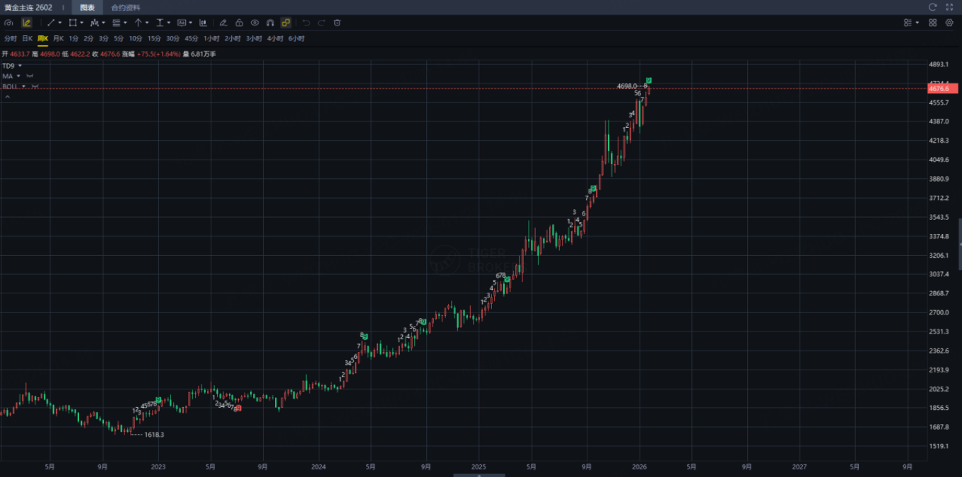 上周贵金属继续在白银的带领下走强,本周盘初受到格陵兰岛局势的变化,黄金再度跳空高开创下新的历史高点。消息面和技术面都给出了继续走强的信息,但周线级别的时间周期还是需要适当留意一下。