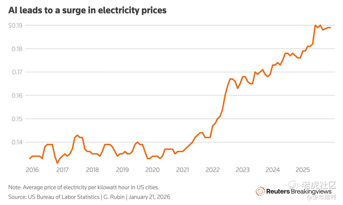电网运营商PJM Interconnection今年1月中旬公布了一项计划,新的大型电力用户要么自带发电设施,要么加入并网管理框架,并接受提前限电。核心问题在于,AI数据中心不仅把居民用电价格给抬上来了,还可能造成大规模断电,这都是政治问题。