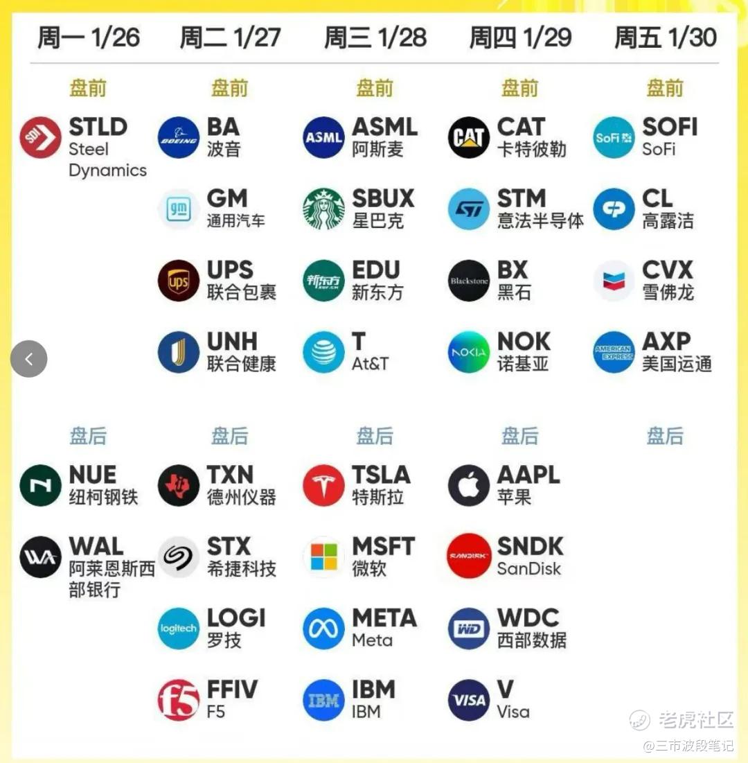 本周的财报披露相对于上周就重要得多了,除了像特斯拉,微软,苹果,META四巨头外,还有最近爆炒的储存SNDK以及半导体重点阿斯麦等都会公布业绩。