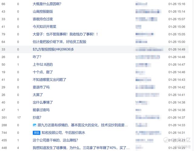 从消息面上看,上周五晚间,九方智投官宣发放648万股股权激励,除此之外,市场并无明显利空消息出现。九方智投也未对此次大跌的原因进行回应,不过,在1月26日晚间,公司宣布将进行股票回购,回购额度为不超过1亿美元。