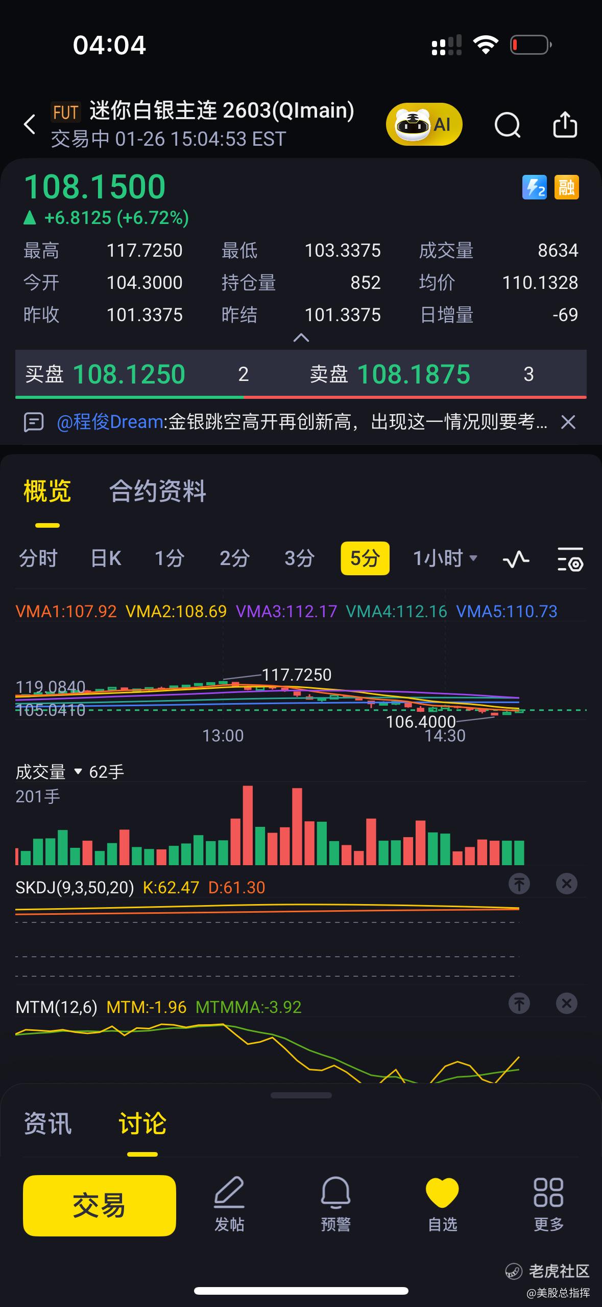 $迷你白银主连 2603(QImain)$ 跳水 通常都是很猛烈的 ,不要急着抄底,但是一定要找机会抄底!$铂金2604(PL2604)$ $黄金主连 2602(GCmain)$ $2倍做多白银ETF-ProShares(AGQ)$ $钯金2603(PA2603)$