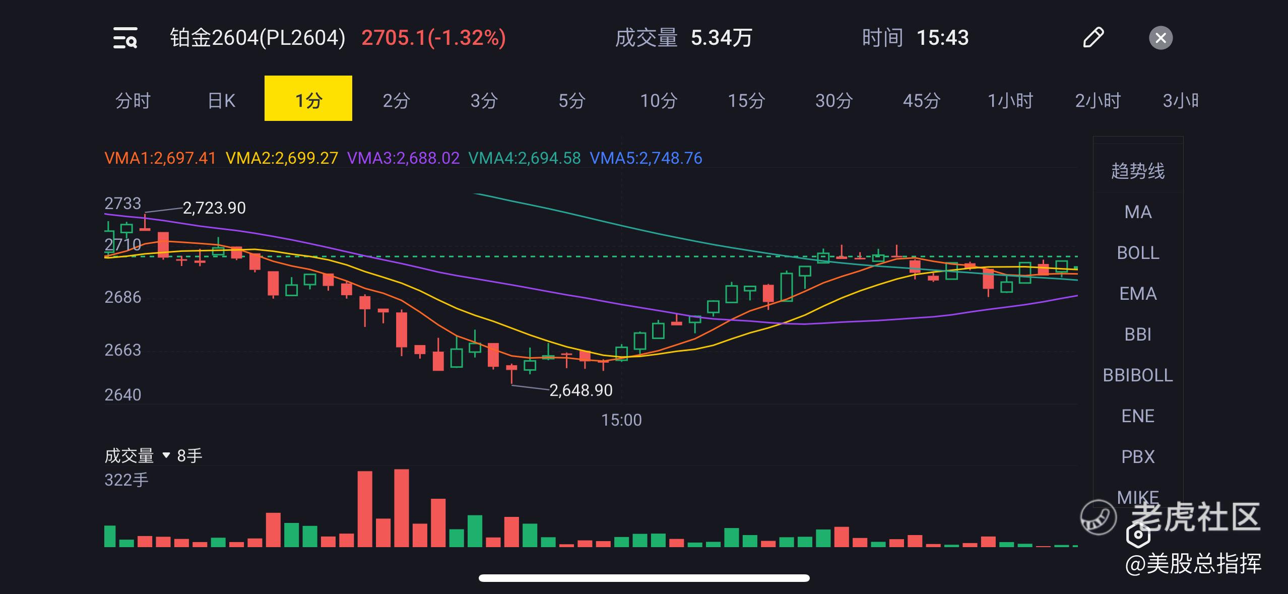 {"i18n":{"language":"zh_CN"},"detailType":1,"isChannel":false,"data":{"magic":2,"id":526071313785328,"tweetId":"526071313785328","gmtCreate":1769460351022,"gmtModify":1769464159912,"author":{"id":3563389597151809,"idStr":"3563389597151809","authorId":3563389597151809,"authorIdStr":"3563389597151809","name":"美股总指挥","avatar":"https://static.tigerbbs.com/a13dadb511630f0e38a7bccb504b8c55","vip":1,"userType":1,"introduction":"","boolIsFan":false,"boolIsHead":false,"crmLevel":8,"crmLevelSwitch":1,"currentWearingBadge":{"badgeId":"e50ce593bb40487ebfb542ca54f6a561-3","templateUuid":"e50ce593bb40487ebfb542ca54f6a561","name":"偶像虎友","description":"加入老虎社区1500天","bigImgUrl":"https://static.tigerbbs.com/8b40ae7da5bf081a1c84df14bf9e6367","smallImgUrl":"https://static.tigerbbs.com/f160eceddd7c284a8e1136557615cfad","grayImgUrl":"https://static.tigerbbs.com/11792805c468334a9b31c39f95a41c6a","redirectLinkEnabled":0,"hasAllocated":1,"isWearing":1,"stampPosition":0,"hasStamp":0,"allocationCount":1,"allocatedDate":"2024.10.27","individualDisplayEnabled":0},"individualDisplayBadges":[],"fanSize":7634,"starInvestorFlag":false},"themes":[],"images":[{"img":"https://static.tigerbbs.com/3278018269665202afce302c7921e970","width":"2556","height":"1179"}],"coverImages":[{"img":"https://static.tigerbbs.com/3278018269665202afce302c7921e970","width":"2556","height":"1179"}],"title":"","html":"<html><head></head><body><p><a href=\"https://laohu8.com/FUT/PL2604\">$铂金2604(PL2604)$</a> 一路跌成交量放大,但后面走势平稳伴随成交量下降,说明下跌动力减弱,短期可以博一个反弹,短期一般指持仓半小时以内</p><img src=\"https://static.tigerbbs.com/3278018269665202afce302c7921e970\" tg-width=\"2556\" tg-height=\"1179\"></body></html>","htmlText":"<html><head></head><body><p><a href=\"https://laohu8.com/FUT/PL2604\">$铂金2604(PL2604)$</a> 一路跌成交量放大,但后面走势平稳伴随成交量下降,说明下跌动力减弱,短期可以博一个反弹,短期一般指持仓半小时以内</p><img src=\"https://static.tigerbbs.com/3278018269665202afce302c7921e970\" tg-width=\"2556\" tg-height=\"1179\"></body></html>","text":"$铂金2604(PL2604)$ 一路跌成交量放大,但后面走势平稳伴随成交量下降,说明下跌动力减弱,短期可以博一个反弹,短期一般指持仓半小时以内","highlighted":1,"essential":1,"paper":1,"likeSize":0,"commentSize":0,"repostSize":0,"favoriteSize":0,"link":"https://laohu8.com/post/526071313785328","repostId":0,"isVote":1,"tweetType":1,"viewCount":185,"commentLimit":10,"likeStatus":false,"favoriteStatus":false,"reportStatus":false,"symbols":["PL2604","PLmain"],"verified":2,"subType":0,"readableState":1,"langContent":"CN","currentLanguage":"CN","warmUpFlag":false,"orderFlag":false,"shareable":true,"causeOfNotShareable":"","featuresForAnalytics":[],"commentAndTweetFlag":false,"andRepostAutoSelectedFlag":false,"upFlag":false,"length":124,"optionInvolvedFlag":false,"xxTargetLangEnum":"ZH_CN"},"commentList":[],"isCommentEnd":true,"isTiger":false,"isWeiXinMini":false,"url":"/m/post/526071313785328"}