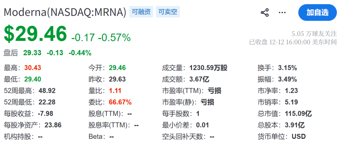 此外,曾被寄予厚望的CMV预防疫苗mRNA-1647。临床三期试验中,这款疫苗未能达到主要终点,迫使Moderna停止其在预防领域的开发。市值也跌到112亿美元的低谷。