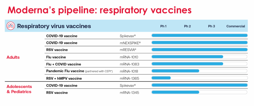 RSV疫苗:RSV疫苗mRESVIA正在进行一项临床三期研究,预计将于2026年获得数据;