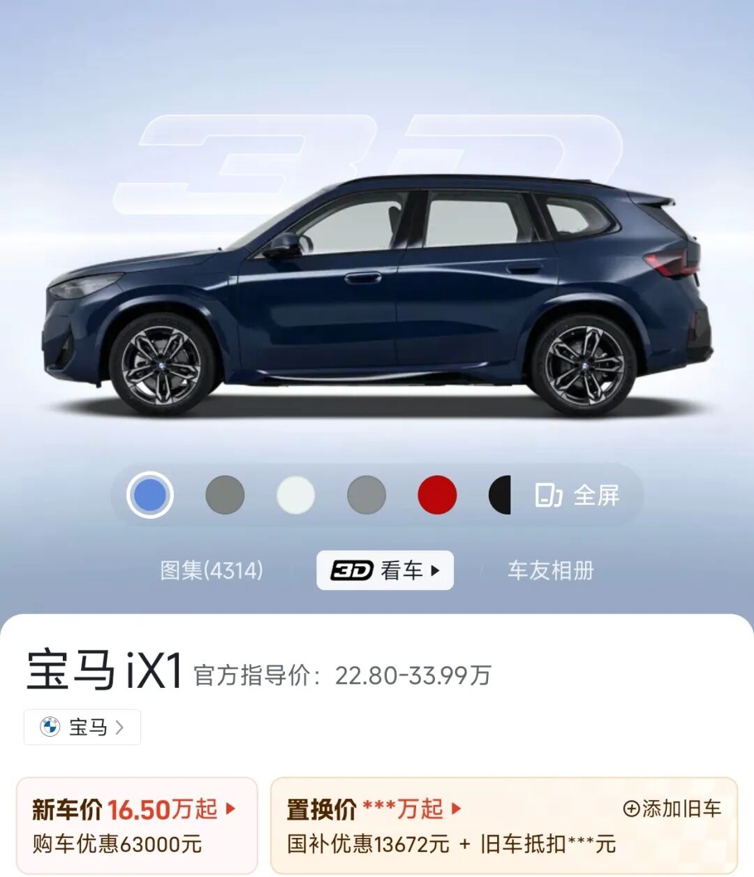 还有款新能源车型 iX1 ,指导价 29.99 万,上个月还有消息降到 14.8 万起!