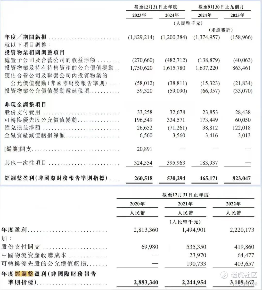 2023年递表时,京东产发持有的资产正值增值期,因此2020年至2022年公司利润大增,如2020年,公司营收为5.82亿元,同期净利润高达28.13亿元。不过,彼时公司在调整利润时,仅剔除了股份支付费用、收购中国物流资产成本等项目,并未调减投资物业公允价值变动带来的利润提升。若按2023年递表时的口径计算,京东产发报告期内的经调整净利润水平将有所缩水。
