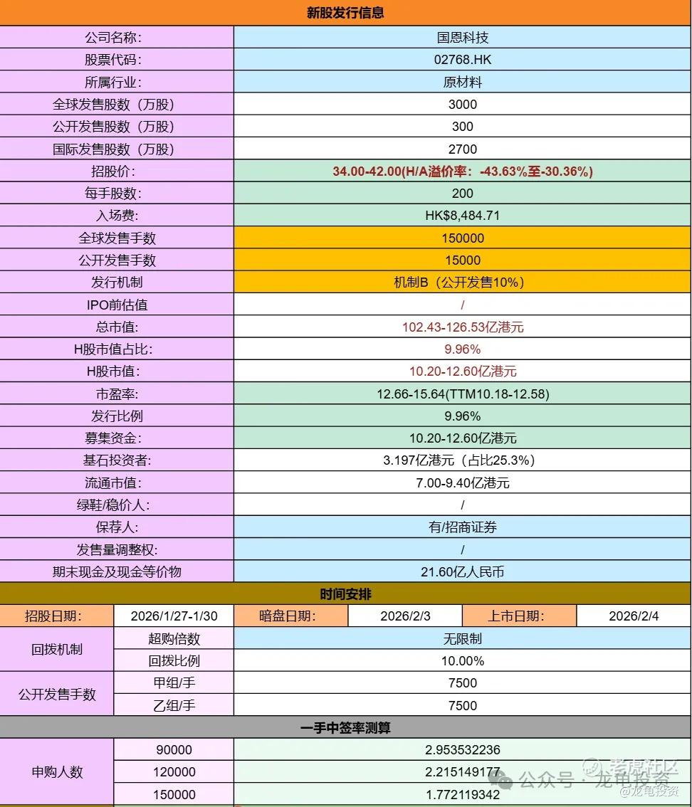 引入8家基石机构,认购3.19亿港元,占比25.3%,禁售期6个月;基石阵容完全没法和东鹏相提并论,但也正常,一家是知名品牌公司,一家是传统原材料公司。但国恩科技就知趣很多,A股今日收盘价59.74元,总市值162亿,H/A股溢价率-43.63%至-30.36%;如果下限定价吃肉问题不大,只是现在的公司都很不老实,这么宽的上下限定价,明显看人上菜。