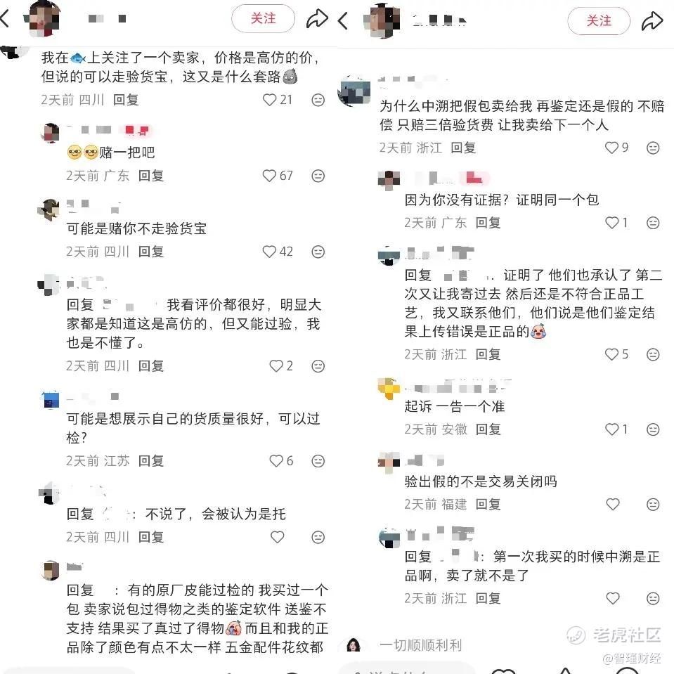 这篇帖子引起了大批用户的共鸣,评论区涌现大量关于验货宝鉴定流程的负面反馈,甚至有消费者讲述了自己“检测机构卖出假包却只赔偿三倍中检费,并让我卖给下一个人”的荒诞体验。
