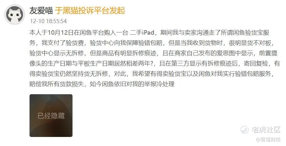 但就用户的反馈来看,闲鱼客服人员承诺的“验错包赔”实际暗藏门槛。有用户在第三方平台黑猫投诉平台上称,其发现经由验货宝鉴定的二手iPad存在货不对板问题,但验货宝方面却坚称产品无拆修,并拒绝提供验错包赔服务。