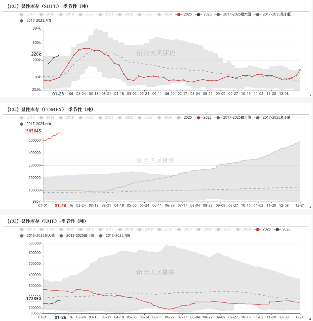 所以就像之前说的,我们正活在两个叙事的交界地,第一个叙事叫做,美国只消耗8%不到的铜,但占据了50%以上的可见库存。所以其他两个市场都很紧张。第二个叙事叫做,全球周期行业基本面依然很差,降息之后或者反内卷之后这些行业可能好一点。经济复苏和价格走高也对铜价是个支撑。