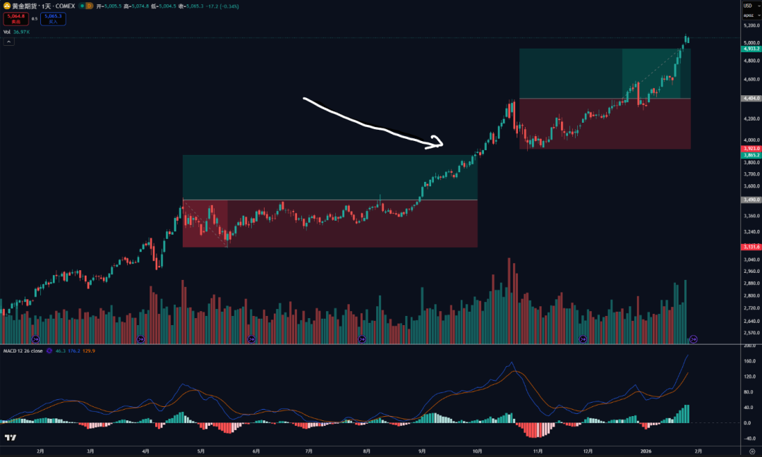 最关键的,我觉得和去年不一样的地方在于,现在因为商品的广度更多,我觉得有更多的方法去表达对于全球秩序重组的看法,而不只是黄金。而且就和去年一样,我觉得3800卖了最后涨到4400非常遗憾,但后面也会给你4000买回来的机会,所以其实抛开中间的曲折,可能最后区别也不大。