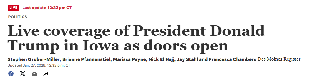 - 在实际的行动上,特朗普总统在今天去了Iowa