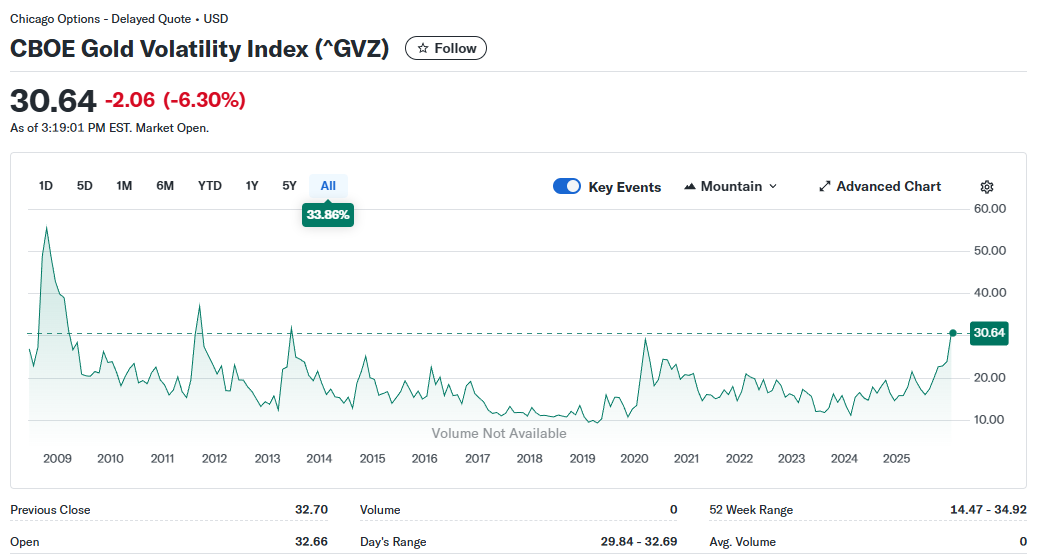 今天我的感受是类似的,金价从4500回撤到4000。5000是一个整数关口。GVZ是30,除了2008年大萧条之外的长期高点