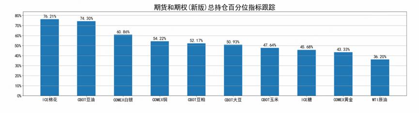 大家可以看到,ICE棉花 $棉花ETN-iPath(BAL)$ 和CBOT豆油 $豆油主连 2603(ZLmain)$ 总持仓百分位居前,说明收到市场的关注度高。