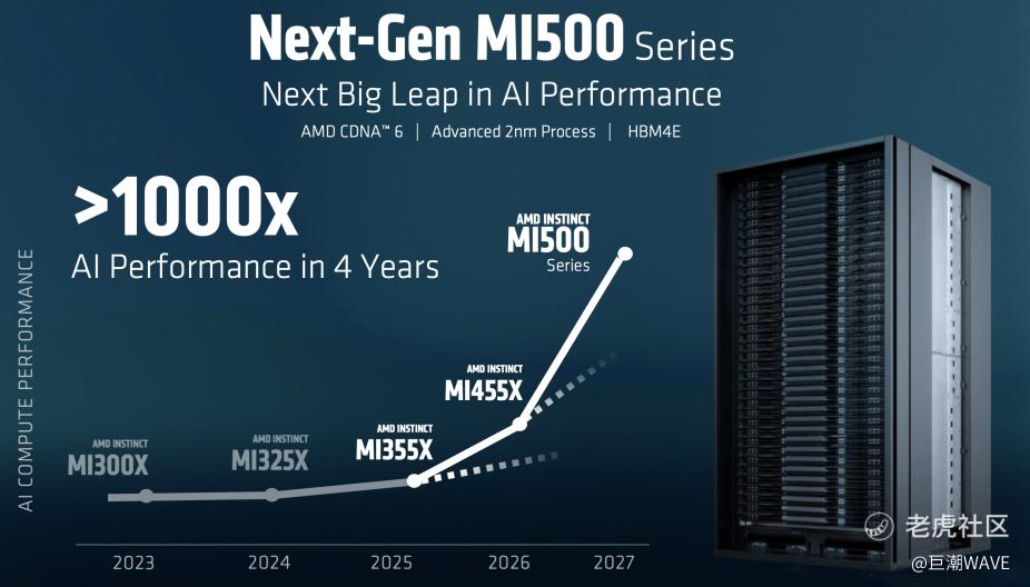 CES 2026大会上,AMD首席执行官苏姿丰宣布,公司新一代AI芯片MI455X已迈入2nm工艺时代,单颗芯片晶体管数量达3200亿颗。并预计于2027年发布MI500系列,还承诺在4年(2023-2027年)内实现1000倍的AI性能提升。