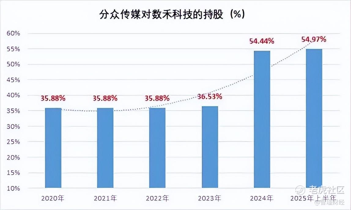 此后,由于数禾科技其他股东减资,到了2025年分众传媒持股比例被动增加至54.97%。