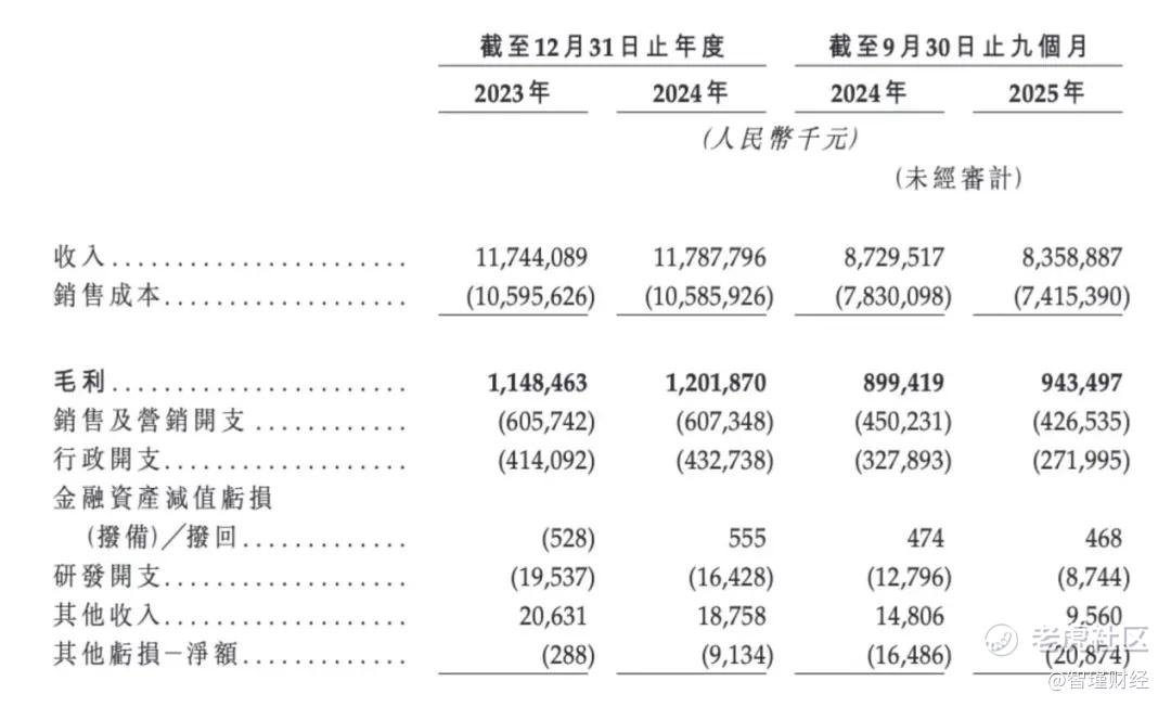 招股书数据显示,2023年、2024年,钱大妈的收入分别为117.44亿元、117.88亿元,收入增长几乎停滞。2025年前9个月,钱大妈的收入为83.59亿元,较2024年前9个月的87.3亿元下滑了4.2%。
