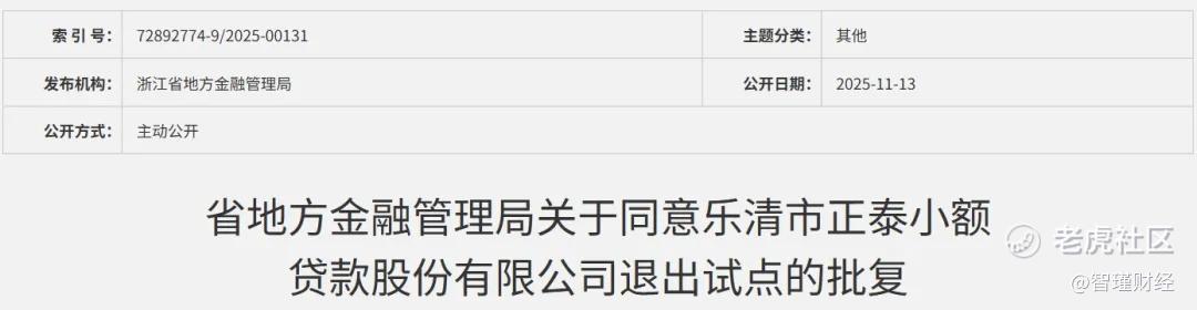 通利咨询前身为乐清市正泰小额贷款股份有限公司(以下简称“正泰小贷”),为浙江省仅有的几张网络小贷牌照之一,同样已于去年11月刚退出小额贷款试点,并退出小贷行业。