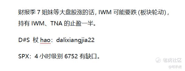 IWM(TNA)今晚在守短期支撑262.3,大盘股与中小盘轮动,预计财报季后会是这种节奏。今年中小盘真的很强势,3倍做多:TNA大家一定要关注起来,IWM目标价297以上。