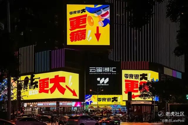 比如我之前实验做过一家 “零食很大” 的门店,零食做得比半个人高,还有专门抓零食的机器。我一直觉得零食是快乐的,年轻人也很喜欢,从解放西路一直排队到了江边,这件事就很有趣。不过后来小葱提醒我,流量这种东西还是要收着做(笑)。
