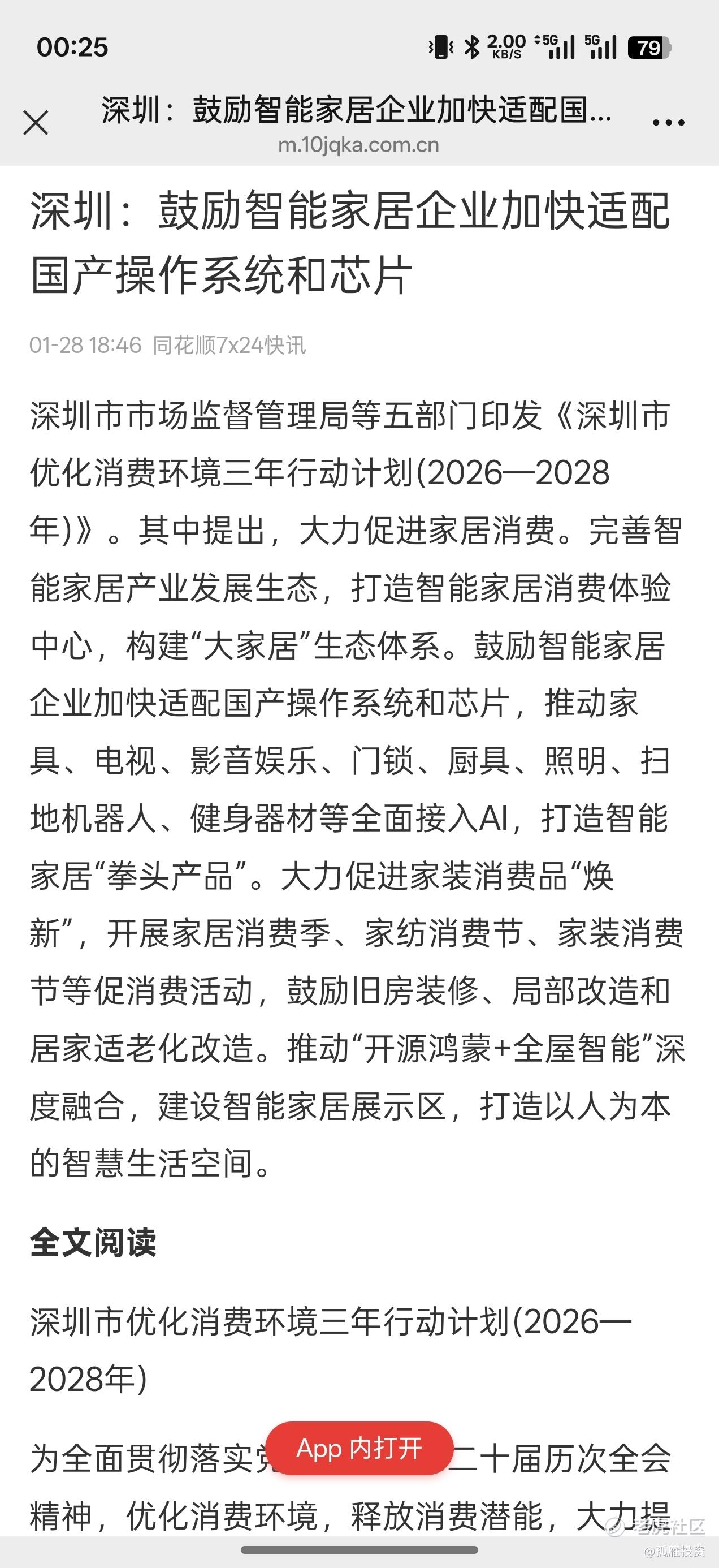 1、深圳新政加码智家国产化,#明确鼓励智能家居企业加快适配国产操作系统与芯片。涂鸦智能作为总部位于深圳的全球IoT云平台龙头,已率先完成鸿蒙、OpenHarmony及多款国产芯片平台的深度适配,#本地政策红利直接转化为订单与技术先发优势。
