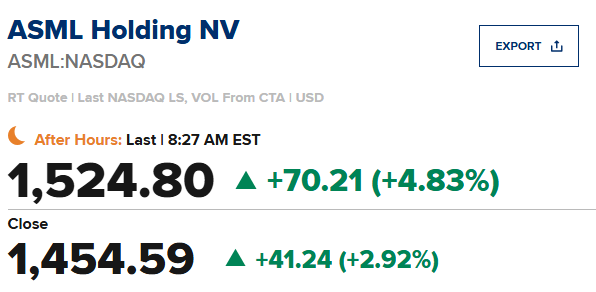 ASML(ASML)第四季度每股收益为7.35欧元,比市场预期值7.58欧元低0.23欧元;营收同比增长 4.9%,达到 97.2 亿欧元,市场预期值 95.7 亿欧元。该公司上调了第一季度业绩指引,预计第一季度的收入为82 - 89亿欧元,市场预期值81亿欧元。该公司预计26财年的营业收入为340 - 390亿欧元,市场预期值353.9亿欧元。