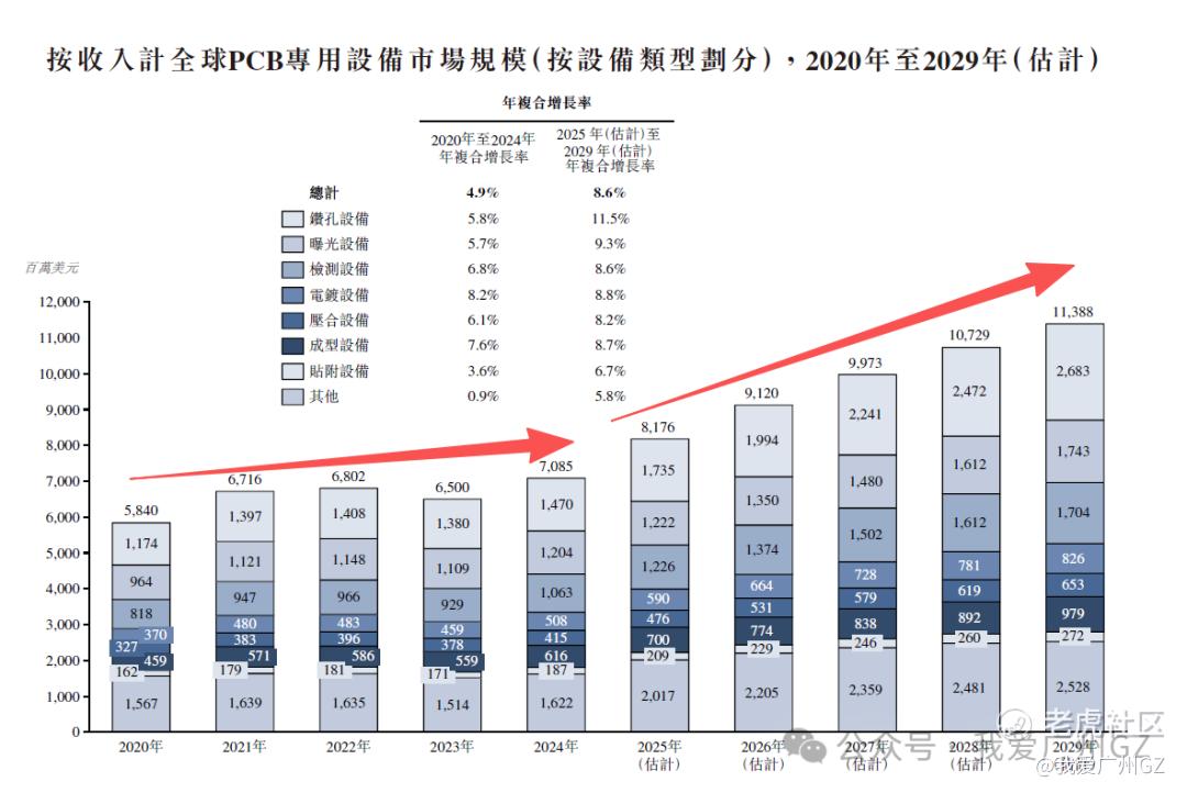 24年按收入算,是中国第一(市占率10.1%),全球第一(市占率6.5%)的PCB设备商。