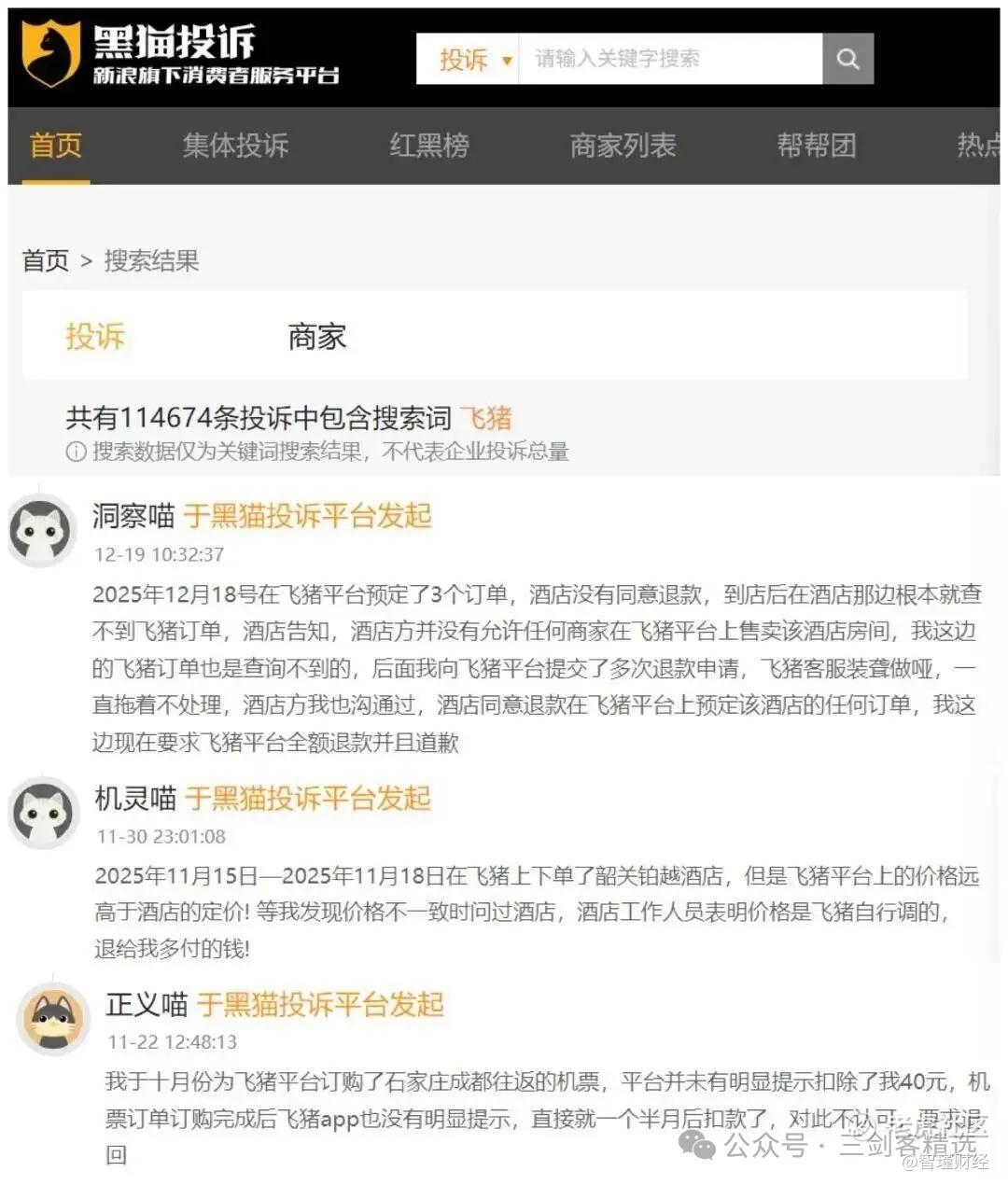 飞猪的这些行为,对消费者和行业都造成了严重的负面影响。对消费者而言,直接面临经济损失,维权过程也耗时耗力。同时,这种诱导消费破坏了消费信任,当消费者对飞猪失去信心后,很可能会转向选择航司、酒店官方渠道购票、订房,这将导致飞猪面临严峻的用户流失问题。
