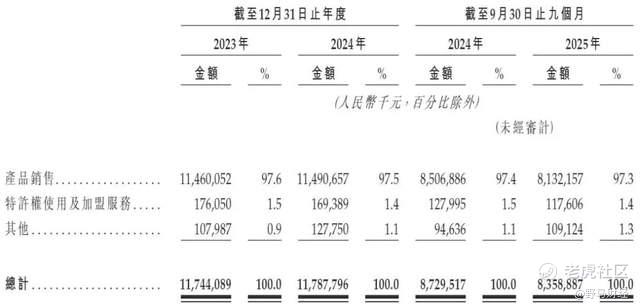 其中,产品销售是钱大妈的主要收入来源,2023年、2024年和2025年前9个月(下称“各期”)分别实现收入114.6亿元、114.91亿元和81.32亿元,分别占总收入的97.6%、97.5%和97.3%。