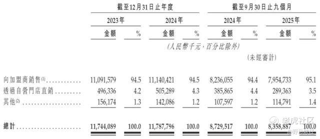 《招股书》显示,钱大妈的线下销售网络主要由第三方加盟商经营的加盟店组成,加盟协议通常为期3年—5年。截至2023年、2024年及2025年9月末,钱大妈分别与1776家、1717家和1754家加盟商合作,旗下拥有2835家、2863家和2898家加盟店,分别占门店总数的97.2%、98%和98.6%。