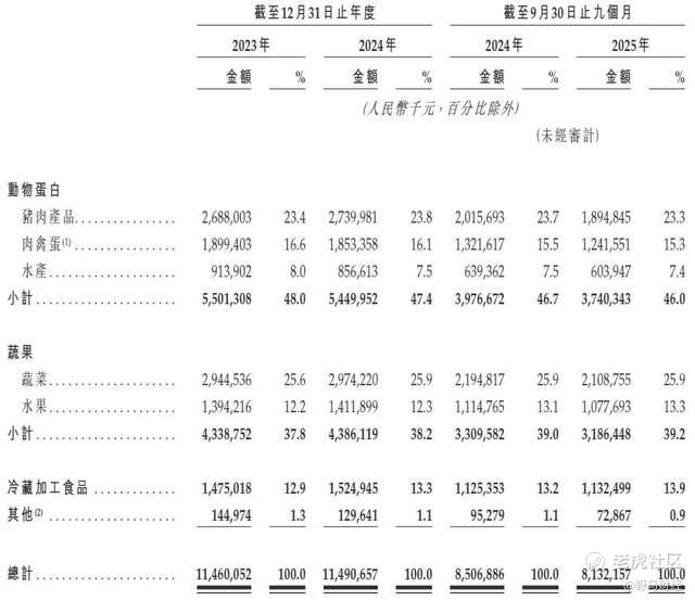 钱大妈销售的产品主要是生鲜产品,包括动物蛋白、蔬果和冷藏加工食品三大类,截至2025年9月末,钱大妈合计提供775个SPU(标准产品单位)。
