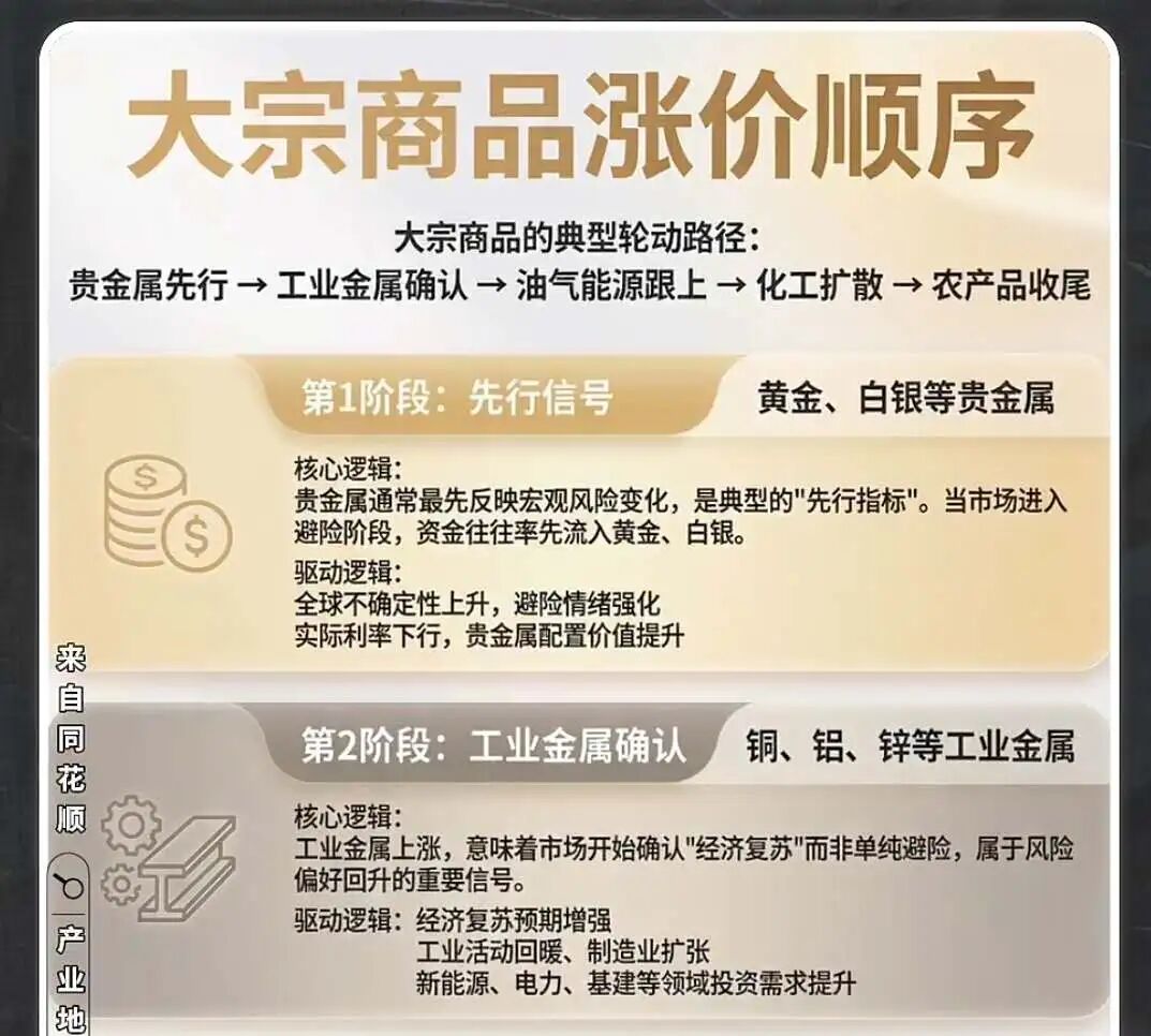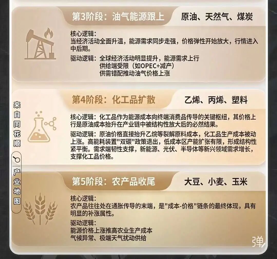关于这一轮大宗商品的涨价,已经发展到不敢追高的程度了,那下一步在哪?之前看了这个图,可以借鉴,下一步,真是化工和农产品?