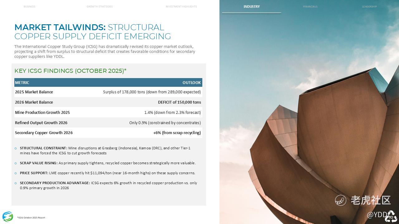 【行业卡位】2026 全球精炼铜缺口预计达 15万吨。YDDL 专注二次铜回收,深度受益于工业金属供应偏紧。