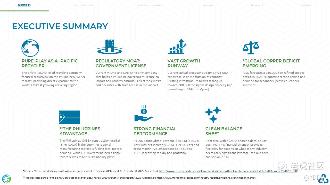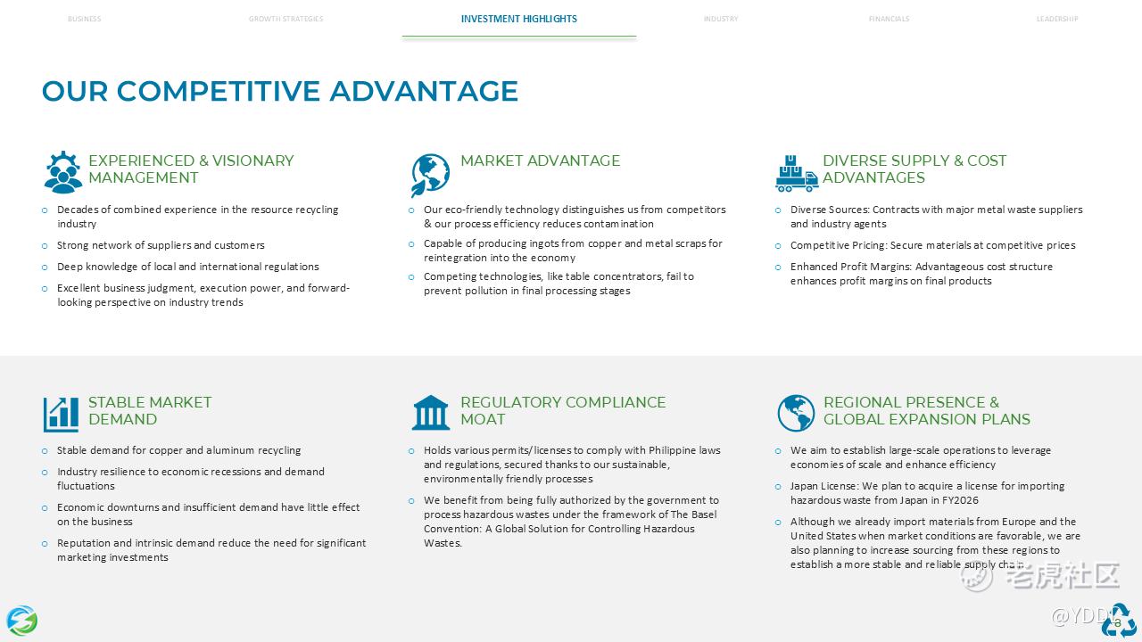 1. 牌照唯一性: 菲律宾唯一拥有政府特许电子垃圾处理执照的纳斯达克上市标的。