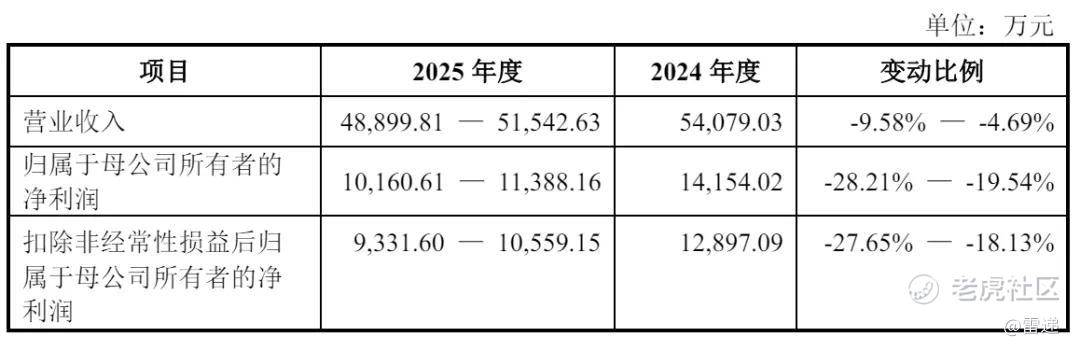 恒运昌预计2025年营收为4.89亿元到5.15亿元,较上年同期的5.4亿元下降4.69%到9.58%;预计净利为1.02亿到1.14亿,较上年同期的1.42亿元下降19.54%下降28.21%;扣非后净利分别为9331.6万元到1.06亿元,较上年同期的1.29亿元下降18.13%到27.65%。
