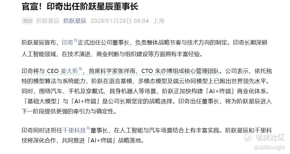 另外,据多家媒体报道,印奇早在2023年阶跃星辰成立之初就曾深入参与过公司的战略规划,且阶跃星辰核心算法团队主要来自旷视体系。据悉,印奇的加入,并不是“空降”,而是公司早有的部署。