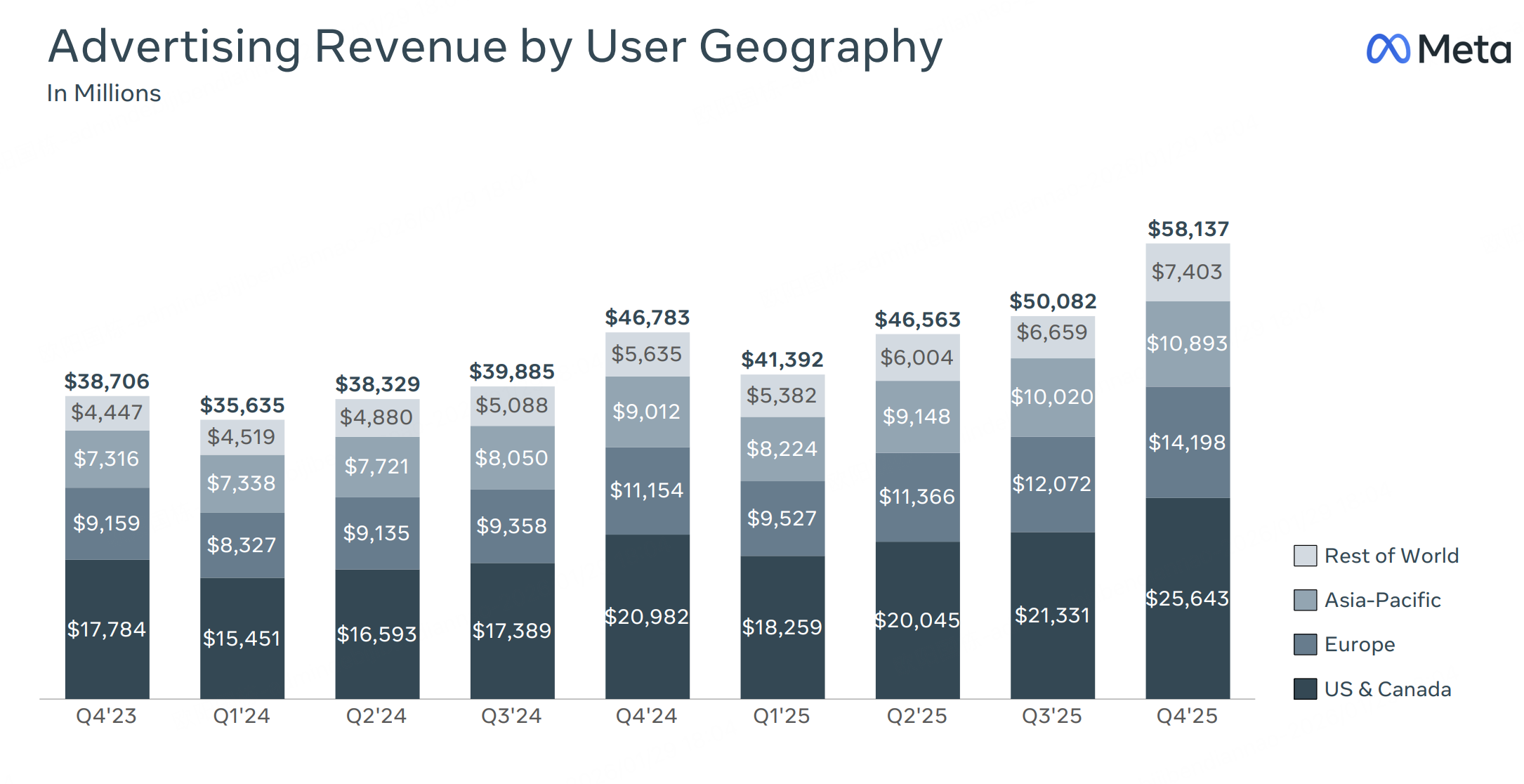 Meta这季属于明显超预期:Q4营收约598.9亿美元、EPS约8.88,都高于华尔街预期;公司给的Q1收入指引也偏强。 展示量+18%且单价+6%,说明Meta不是靠塞更多广告位硬挤收入,而是在广告需求增加(展示量增加)的同时,Meta通过推荐与投放系统把同样的流量卖得更贵、更有效(单价上升)。