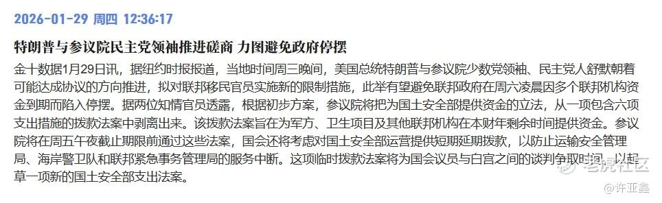 最后,美国政府的停摆风险。