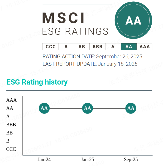 近日,国际权威评级机构摩根士丹利资本国际公司(MSCI)公布最新ESG评级结果。零跑汽车凭借在环境、社会及公司治理(ESG)领域的扎实实践与长期投入,再度获评“AA”级。这也是零跑汽车连续第三年获此评级,标志着公司在可持续发展领域的领先地位与长期承诺持续获得国际认可。