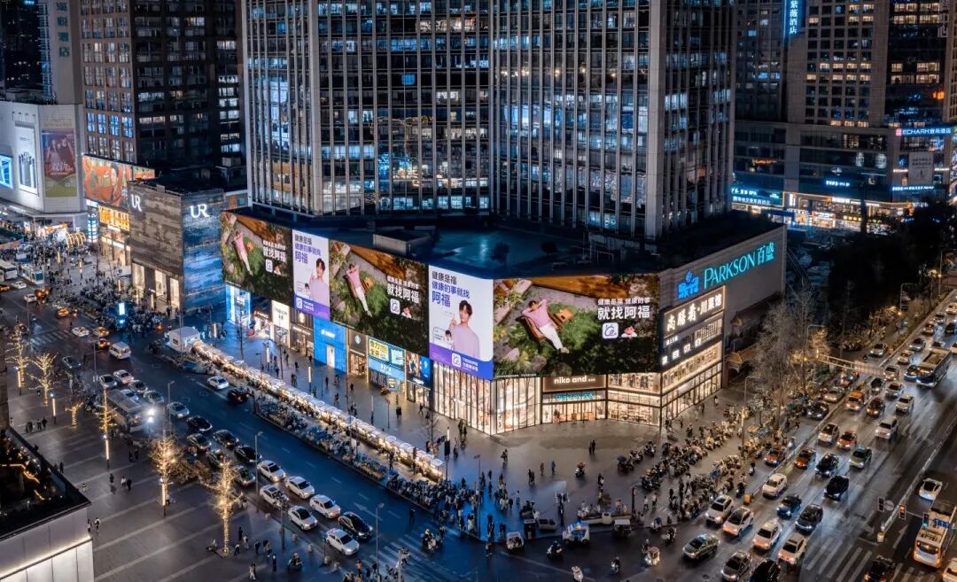 ▲蚂蚁阿福在春熙路的巨屏广告 图源:社交网络